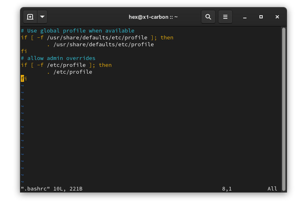 One thing I appreciated was the distribution’s back-to-basics Bash. Instead of splitting Bash configurations into multiple preconfigured files, Clear Linux gives you only .bashrc. All it says by default is where to find the user profile.