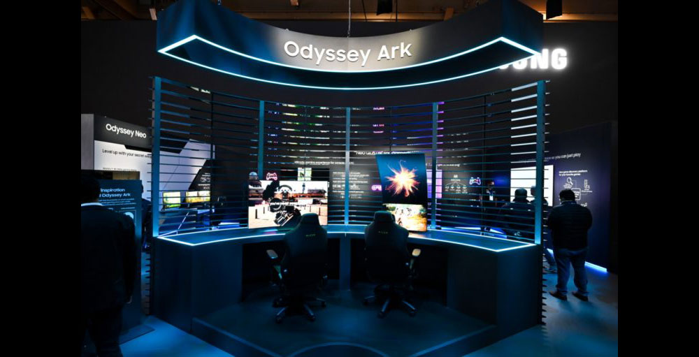 Samsung’s Odyssey Ark, a new 55-inch curved gaming screen, takes immersion to the next level. Exhibit at CES 2022 (Credit: Samsung)